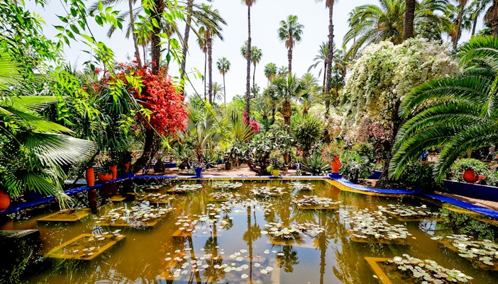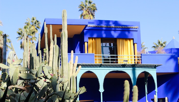 W samym sercu ogrodu stoi słynna kobaltowo-niebieska willa w stylu Art Deco, niegdyś pracownia francuskiego malarza Jacquesa Majorelle. Sam zaprojektował każdy szczegół, od żywych niebieskich murów po czyste geometryczne linie, które pięknie kontrastują z zielenią. Kolor, obecnie znany na całym świecie jako Majorelle Blue, stał się ikoną Marrakeszu. Willa oddaje miłość Majorelle do marokańskiego światła, sztuki i architektury i pozostaje prawdziwym symbolem kreatywnego ducha miasta.