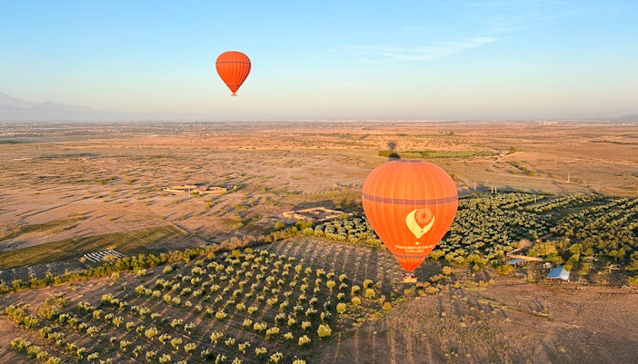 Sobrevoa Marraquexe num passeio de balão de ar quente ao nascer do sol, saboreia um café da manhã tradicional berbere e recebe um certificado comemorativo do voo.